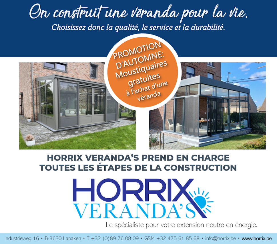 Toujours une maison ensoleillée avec uneconstructiondevérandaidéale de Horrix. Alors, vous aurez l’été tous les jours. Vous ne devez plus attendre le beau temps pour sentir les premiers rayons du soleil sur votre visage. Vous pouvez aussi avoir votre part de vitamine D pendant des journées d’hiver rudes. Ou quand il pleut à seaux.