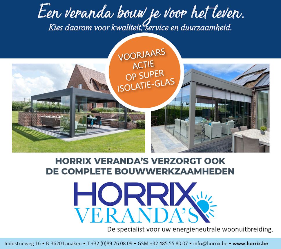 Zet uw veranda in het zonnetje. Letterlijk dan. Want met de verandabouw van Horrix is het alle dagen zomer. U hoeft niet langer te wachten op mooi weer om van de eerste zonnestralen op uw gezicht te genieten. U kunt uw portie vitamine D ook opdoen tijdens gure winterdagen, of wanneer het bakstenen uit de lucht regent.